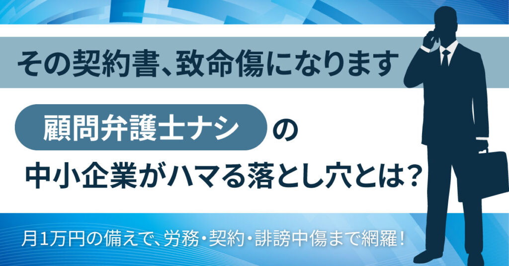その契約書、致命傷になりますー“顧問弁護士ナシ”の中小企業がハマる落とし穴とは?月1万円台~の備えで、労務・契約・誹謗中傷まで網羅!ー