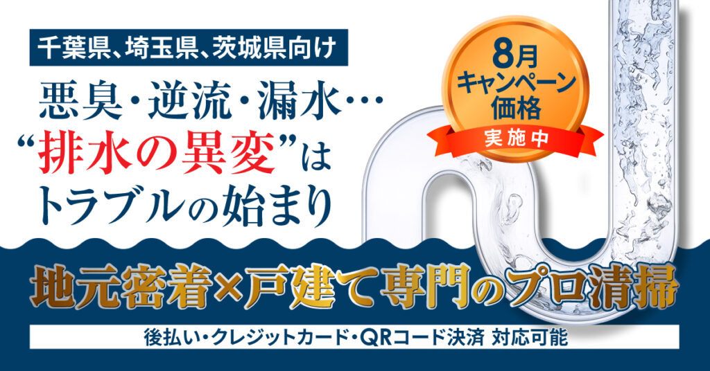 《千葉県、埼玉県、茨城県向け》悪臭・逆流・漏水…“排水の異変”はトラブルの始まり 地元密着×戸建て専門のプロ清掃