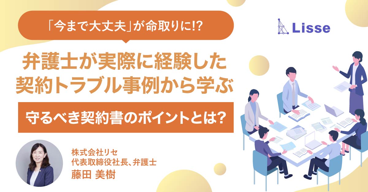 【3月11日(火)13時~】【「今まで大丈夫」が命取りに⁉】弁護士が実際に経験した契約トラブル事例から学ぶ、守るべき契約書のポイントとは?