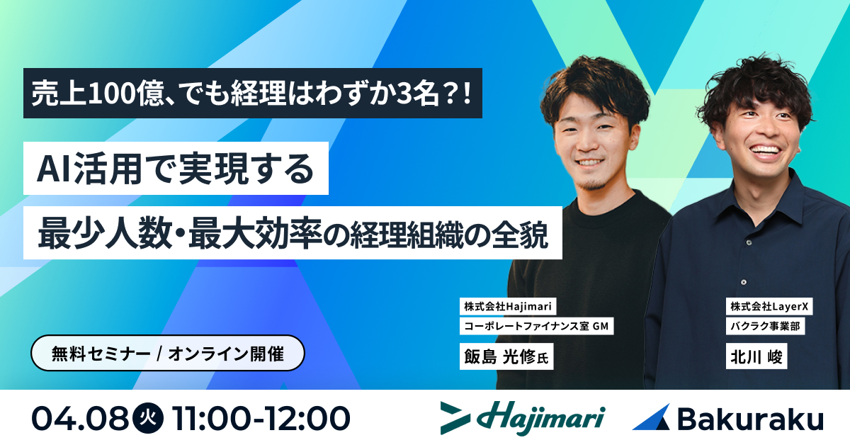 【4月8日(火)11時~】売上100億、でも経理はわずか3名?!AI活用で実現する最少人数・最大効率の経理組織の全貌