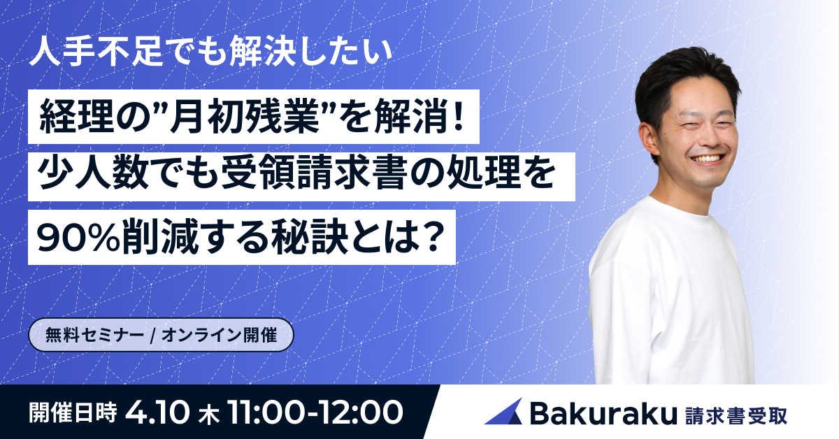【4月10日(木)11時~】【経理の”月初残業”を解消!】少人数でも受領請求書の処理を90%削減する秘訣とは?