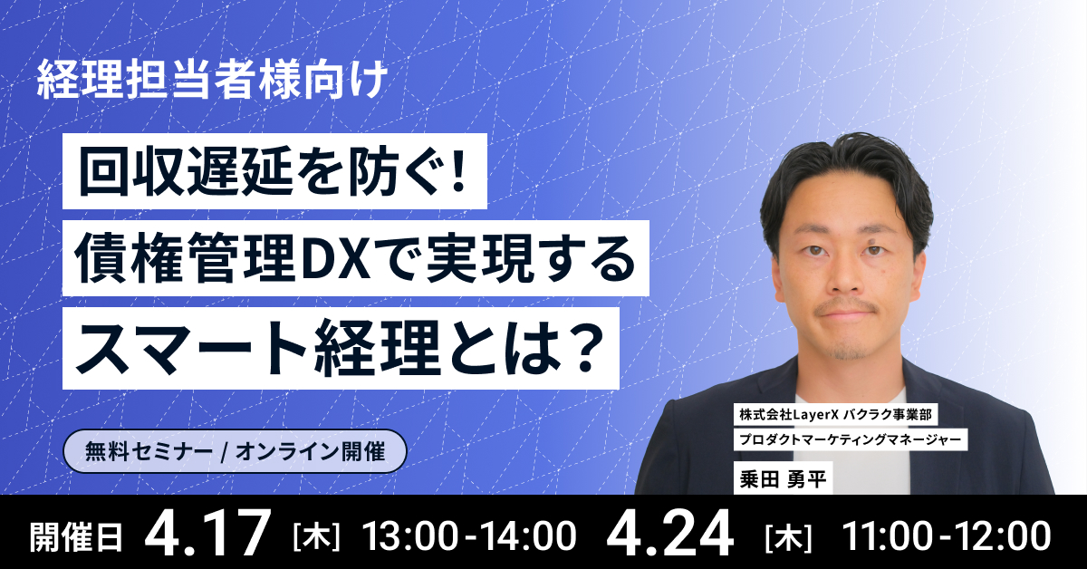 本セミナーでは、経理DXを活用した債権管理の最適化について解説します。請求・入金管理・督促業務を効率化し、回収漏れのリスクを最小限に抑える方法をお伝えします。ぜひご参加ください。