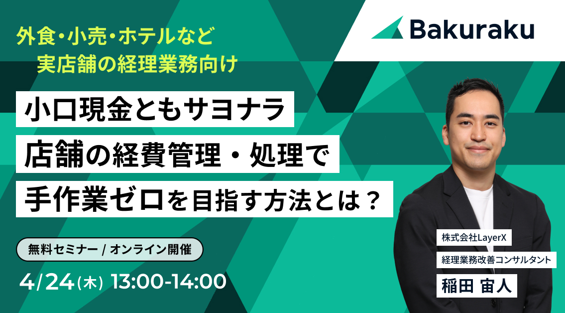 本セミナーではペーパーレス化・小口現金削減により、店舗の効率的な経費管理・支出管理を実現する方法を徹底解説します!