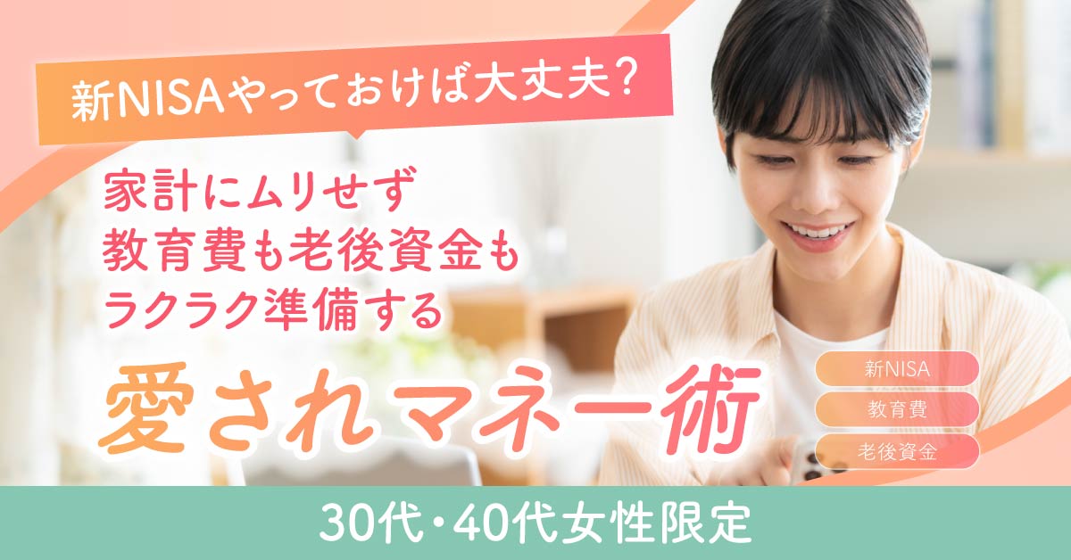 【5月20日(火)20時~】【30代・40代女性限定】新NISAやっておけば大丈夫?家計にムリせず教育費も老後資金もラクラク準備する「愛されマネー術」