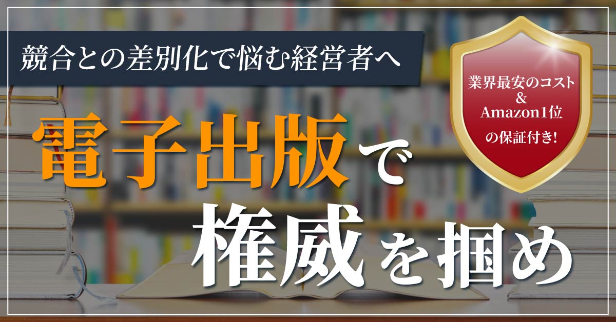 【5月22日(木)20時~】【競合との差別化で悩む経営者へ】業界最安のコスト&Amazon1位の保証付き!電子出版で権威を掴め