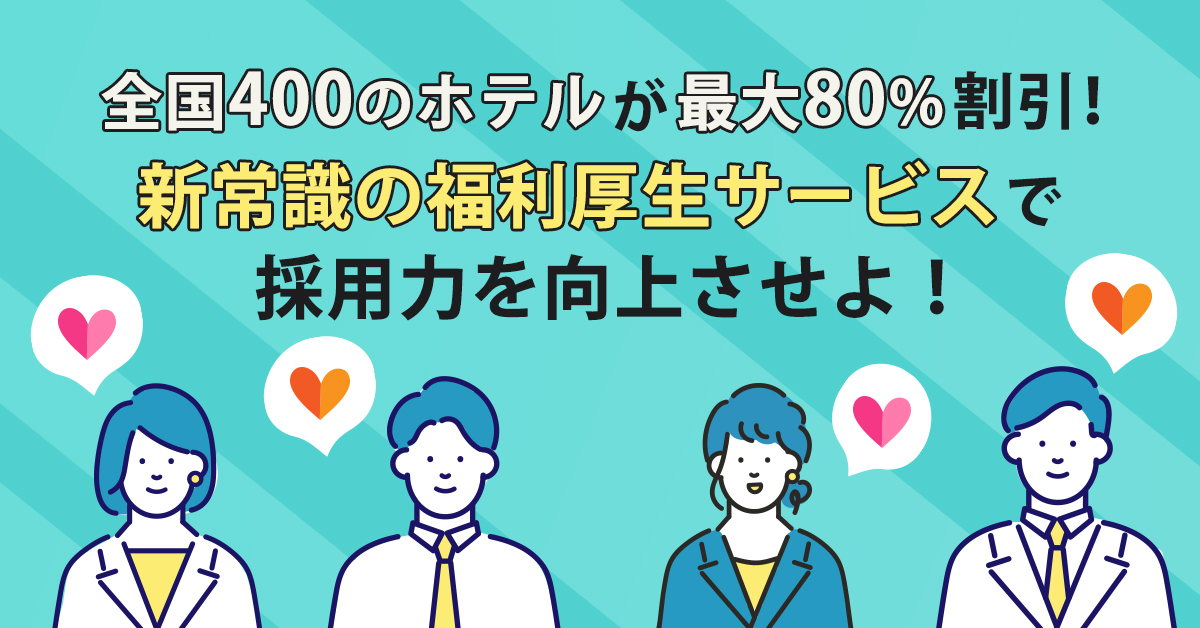 【6月24日(火)13時~】全国400のホテルが最大80%割引!新常識の福利厚生サービスで採用力を向上させよ!